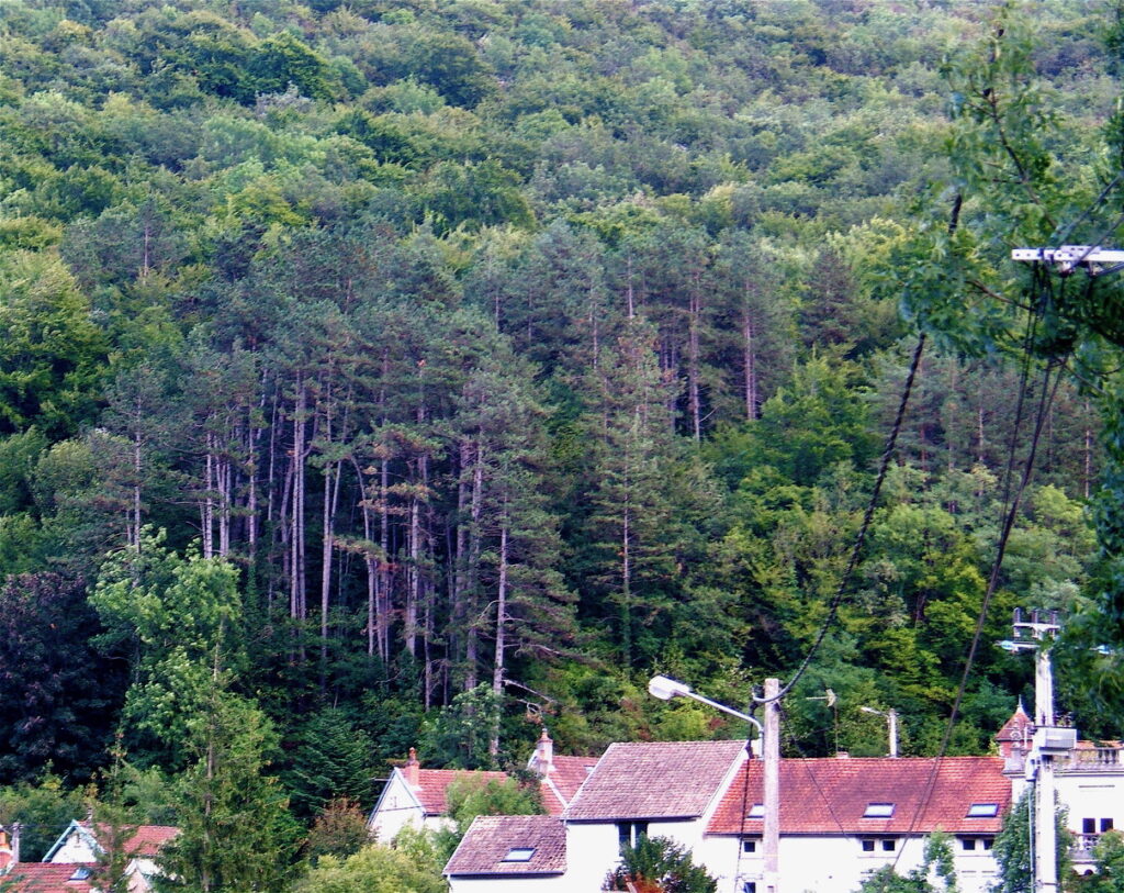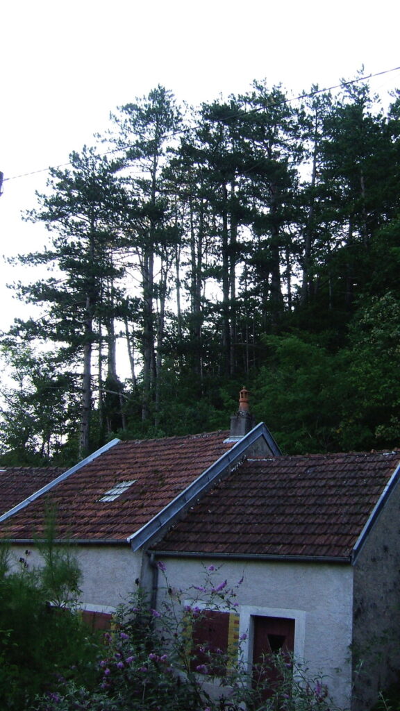 Le 28 août 2005, j’ai récupéré les clefs de la maison de mon enfance à St V’tu. Celle-ci était occupée par une « Diogène » qui venait de décéder. Les spécialistes du syndrome vous dirons qu’il vous laisse un souvenir inoubliable ; l’ensemble des bâtiments, de la cave aux greniers, était rempli d’objets que l’on pourrait qualifier de déchets pour la plupart. Le terrain attenant, au sud-est était arboré d’une cinquantaine de pins noirs d’Autriche surplombant les toitures de 20/25 mètres. Du boulot en perspective qui devrait attendre la recherche des huit cousins co-héritiers. Deux ans plus tard, en 2007, la succession étant réglée, nous étions à pied d’œuvre.
