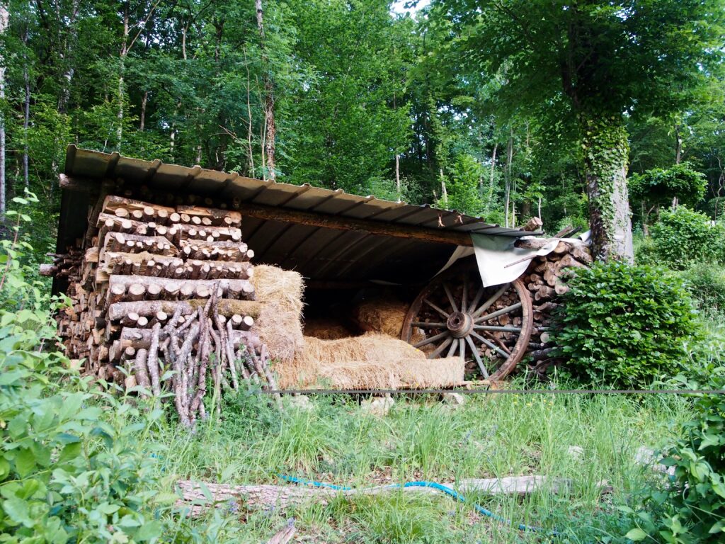 L’idée était de quitter nos ateliers-logements en ville pour venir habiter là et installer un jardin de sculptures-verger-potager-forêt sur environ 50 ares.